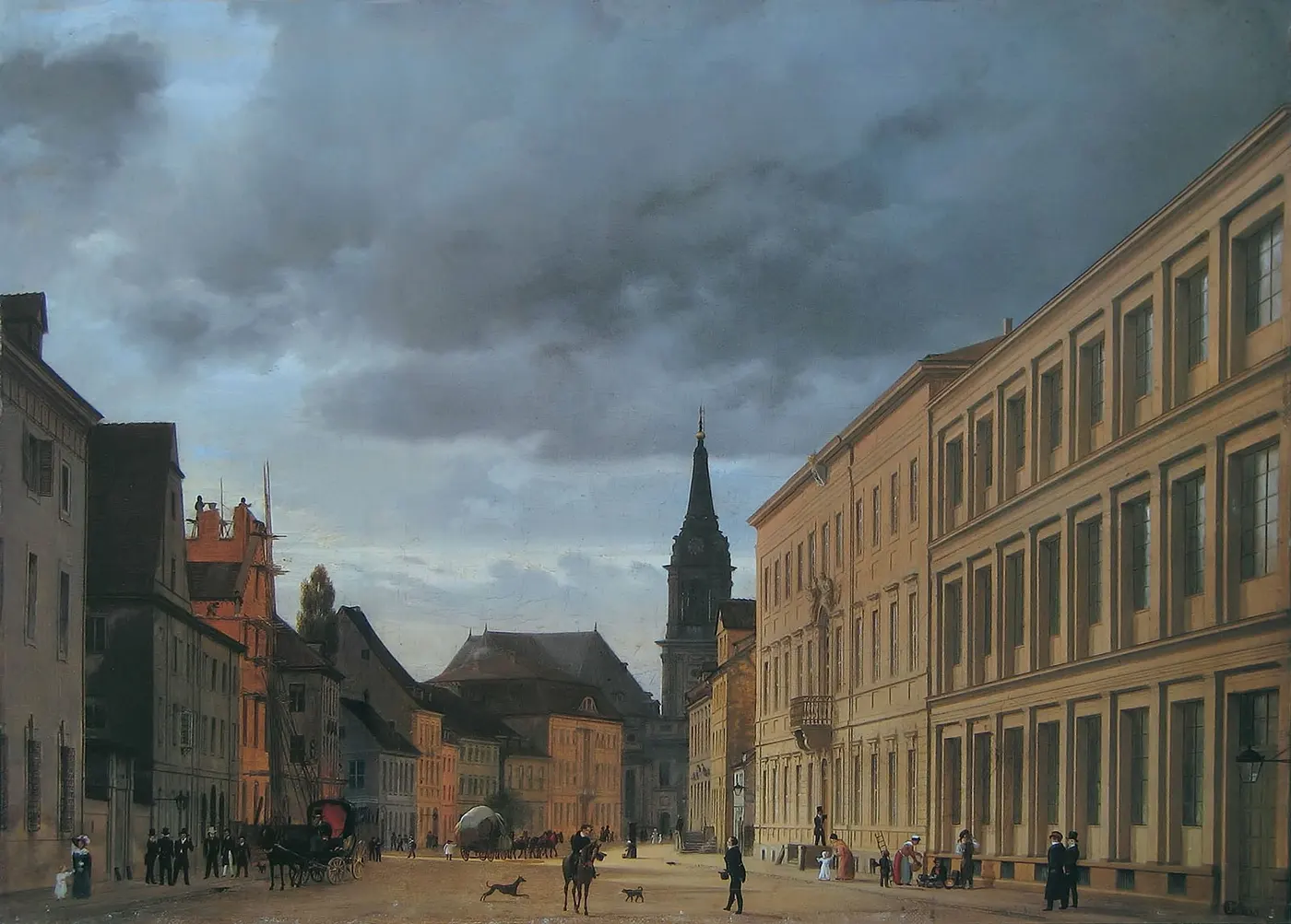 Figure 2.0 Klosterstrasse, an oil painting by Eduard Gärtner (1830). From the collection of the Alte Nationalgalerie, Staatliche Museen zu Berlin. Photographed by Jörg P. Anders."Figure 3.0 Berlin, Klosterstrasse. Gewerbeinstitut. Beuth in his work residence, a watercolor painting by Karl Friedrich Schinkel (1838). From the collection of the Staatliche Museen zu Berlin, Kupferstichkabinett.